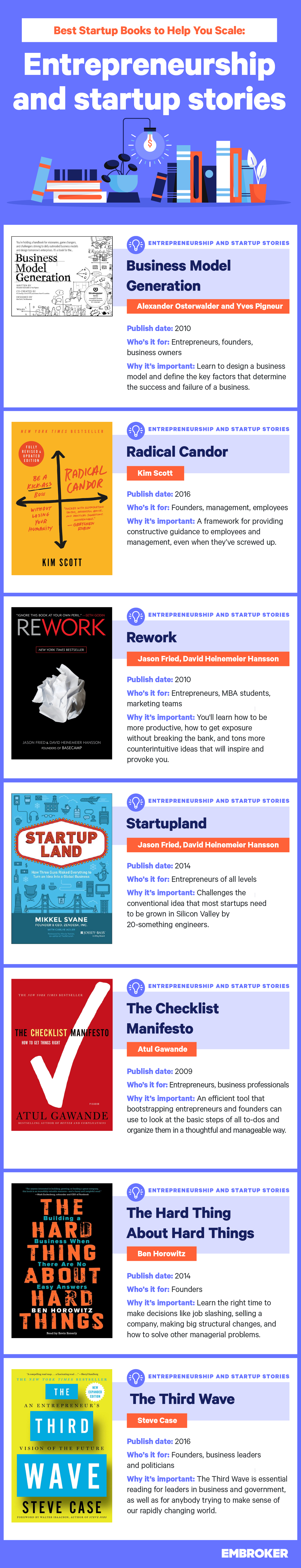 So, where do you start? Not all books offer quality advice and it can be time consuming to sift through reviews to discern quality from fluff. Knowing this, the startup insurance company, Embroker, put together a guide of the best startup books to help point you in the right direction.